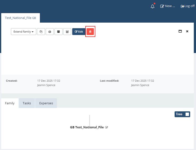 Delete a file (move to trash) 1. In the file overview, select the file you want to delete. 2. Next to the blue “Edit” button, click the red trash can icon. 3. The file is immediately moved to “Deleted files”. Note: There is no confirmation dialog or intermediate step before the file is moved to the trash. |