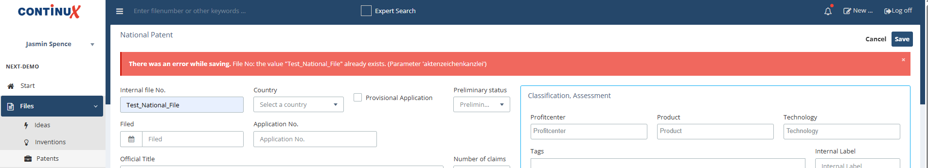 Note on files with the same reference If you want to create a new file with the same file reference, the previously deleted file must be permanently deleted first. Otherwise, the system returns an error and the file cannot be created: |