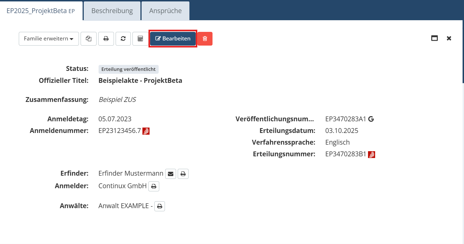 1. Öffnen Sie die Akte, in der Sie eine Person zuweisen möchten indem Sie auf Bearbeiten klicken |