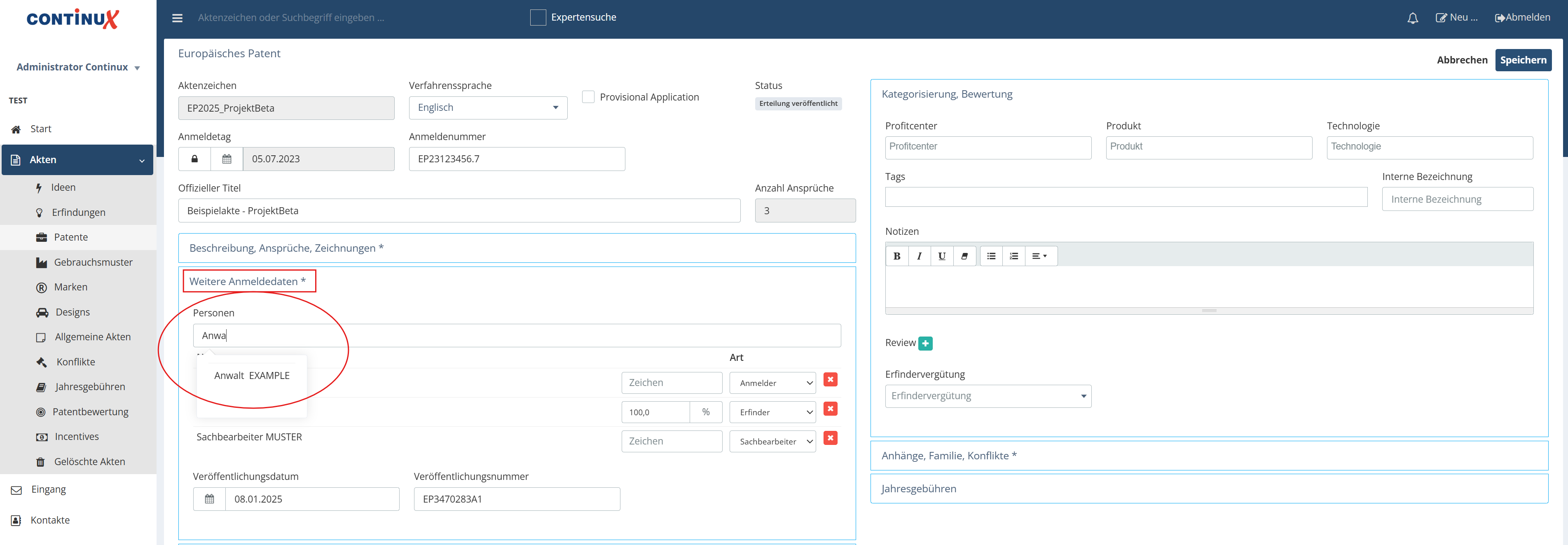 Weiterführende Artikel und Links ➔ Erfinder in einer Akte hinterlegen ➔ Kontakte - Personen anlegen in Continux (folgt) ➔ Report: Fristen und Aufgaben - Nutzung der Filter |