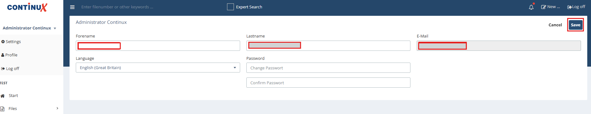 4. In the “Profile” section, you can now edit the fields “First name”, “Last name” and “Email”.