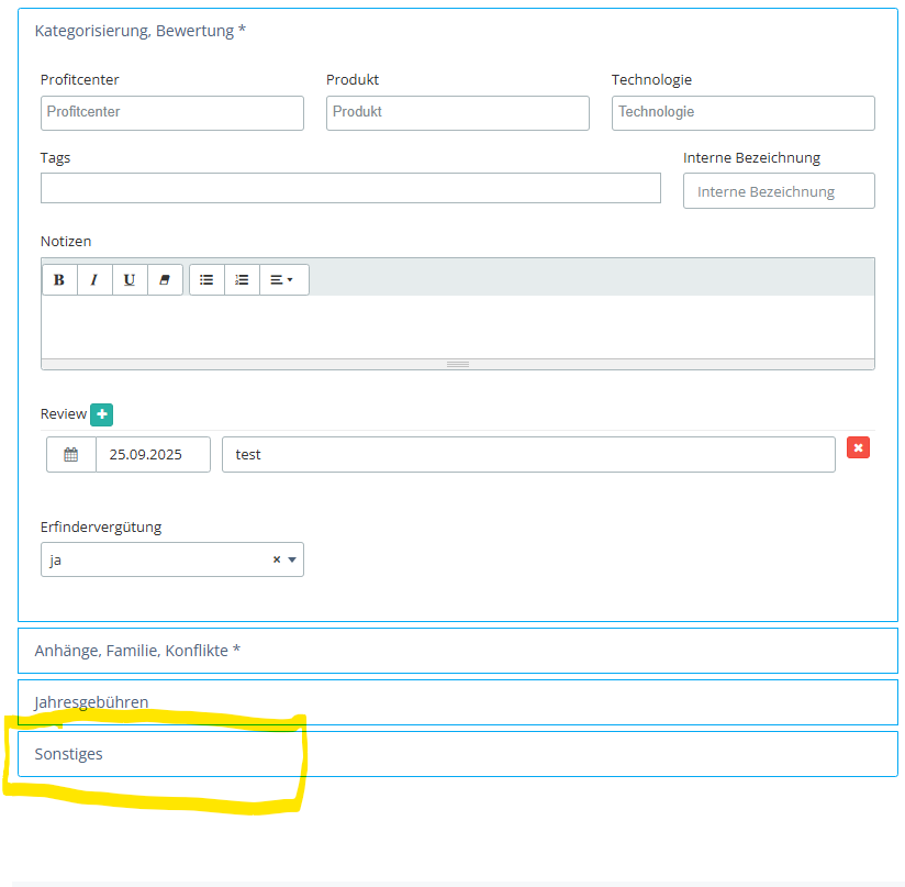 Wir haben die globalen Rollen, wie Sie sie kennen nun erweitert. Zu den bibliogrphischen Rollen (Anmelder, Erfinder, Vertreter u. dgl.) kommen nun viele weitere Rollen hinzu. Um die in Continux kriegsentscheidend wichtige Übersichtlichkeit zu wahren, haben wir die wesentlichen Rollen an der gewohnten Stelle belassen, hier ein Bild zur Veranschaulichung: