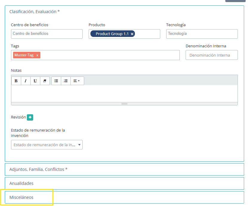 Hemos trasladado los roles adicionales a una nueva sección. La nueva sección se llama “Varios”. Allí podrá añadir y guardar contactos con otros roles. A continuación, le presentamos un resumen de todos los roles: