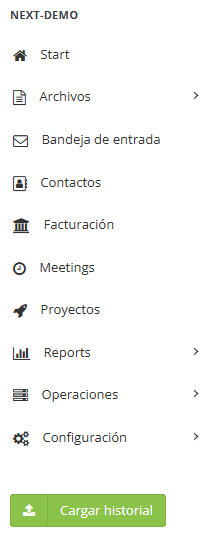 Figura 7: Aquí la nueva “zona verde” -> símbolo para cargar archivos Y el archivo CSV descrito anteriormente. Justo al lado, el botón “Historial de subidas”, donde puede verificar cómo ha ido la carga.