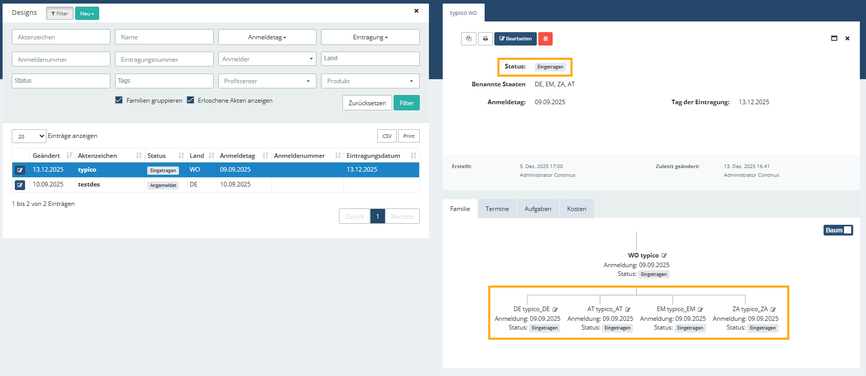 Und nicht nur das, wird ein IR-Design eingetragen, legt Continux automatisch die benannten Staaten als Familienverbindungen an. Sie müssen keinen Finger rühren!