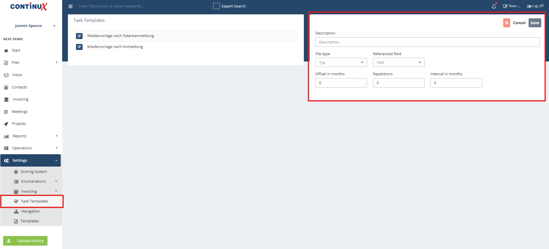 Starting today, if you have the appropriate permissions, you can create your own templates for tasks or “pre-reminders” for deadlines. Those interested are welcome to contact our support!
